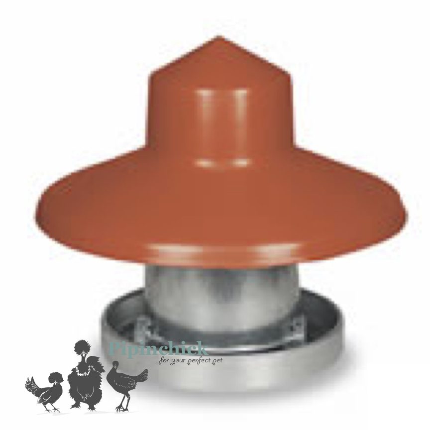 Rat proof, pressure plate treadle feeder in multiple feed capacity sizes by Eton suits larger breeds of chickens.