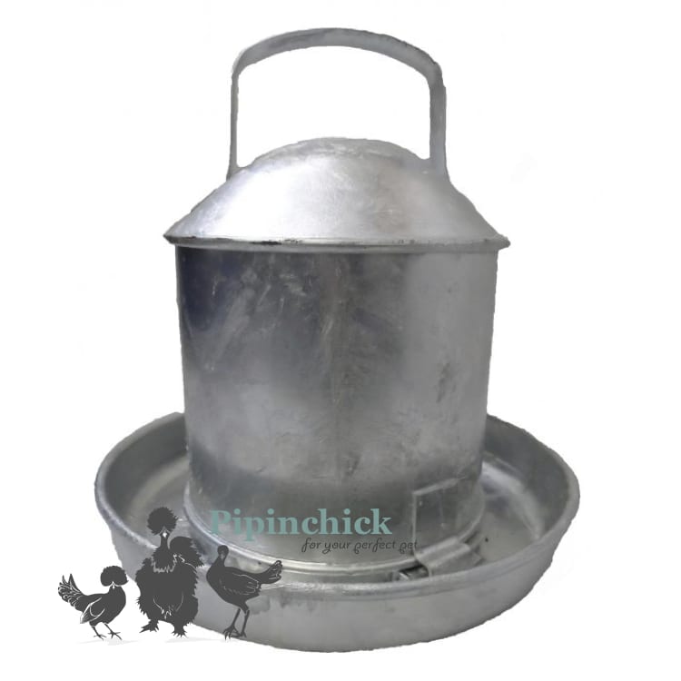 Galvanised and painted bucket style drinker for poultry and chickens, easy to fill and carry and sits nicely on its side for easy access.