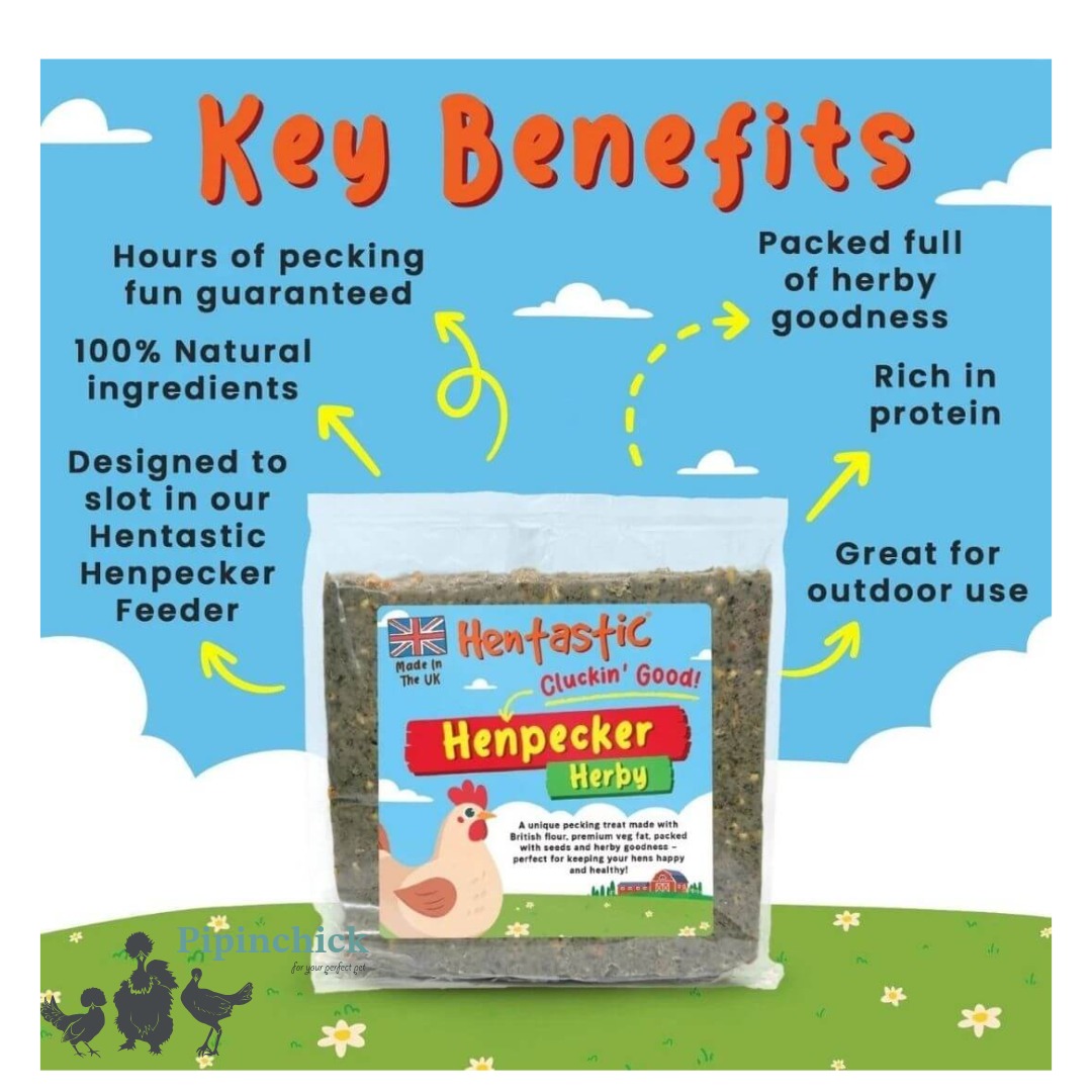 This Henpecker is an irresistible pecking treat made with British flour, premium vegetable fat, mixed seeds & peanut butter. Plus, it’s packed full of herby goodness for happy, healthy hens!